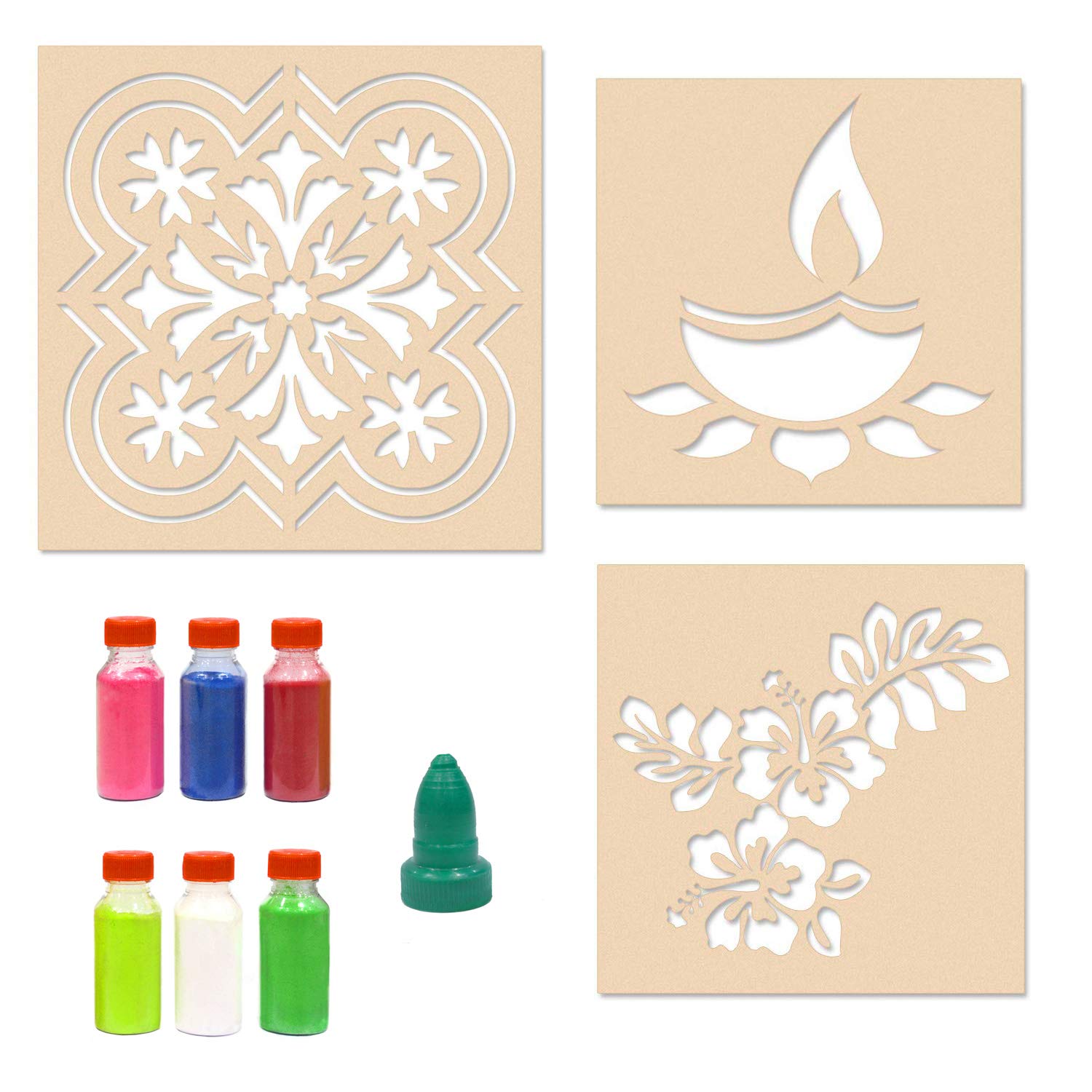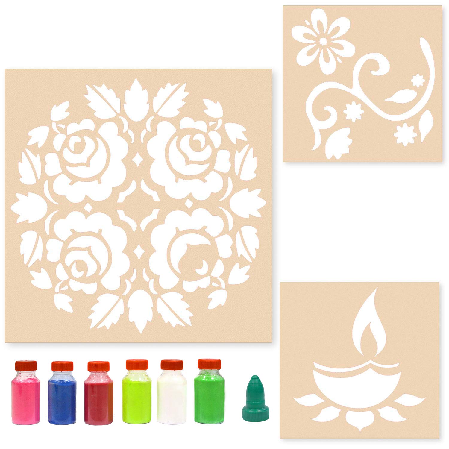 Buy Incredible Gifts India Floral With Border Rangoli Stencil Combo With Six Rangoli Colours Wood 30cmx30cm Online At Low Prices In India Amazon In - Dry rangoli introduced by lopamudra and wet rangoli.