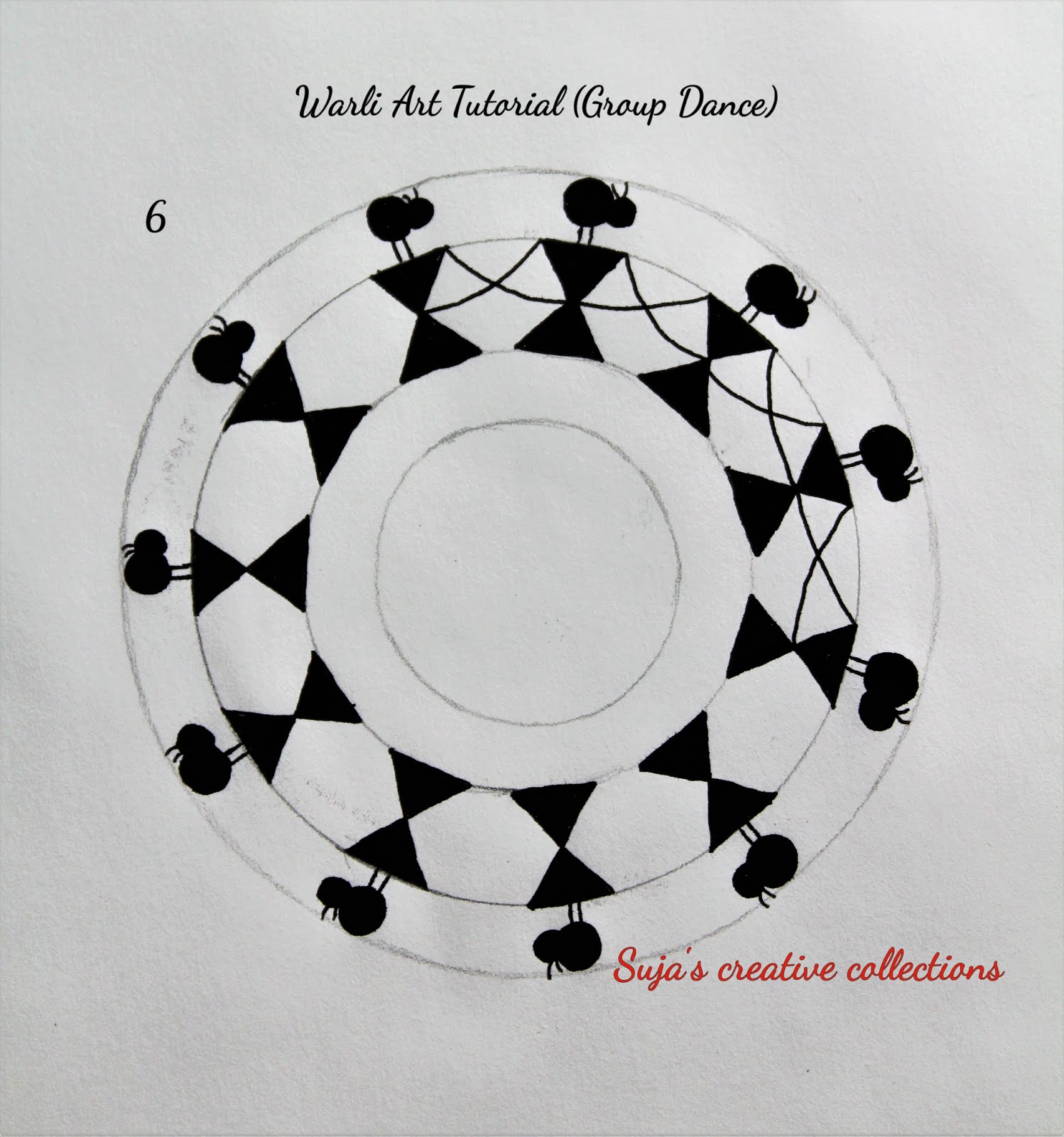 Suja S Creative Collections Warli Dance - Learn to draw a village warli art easily for kids.
