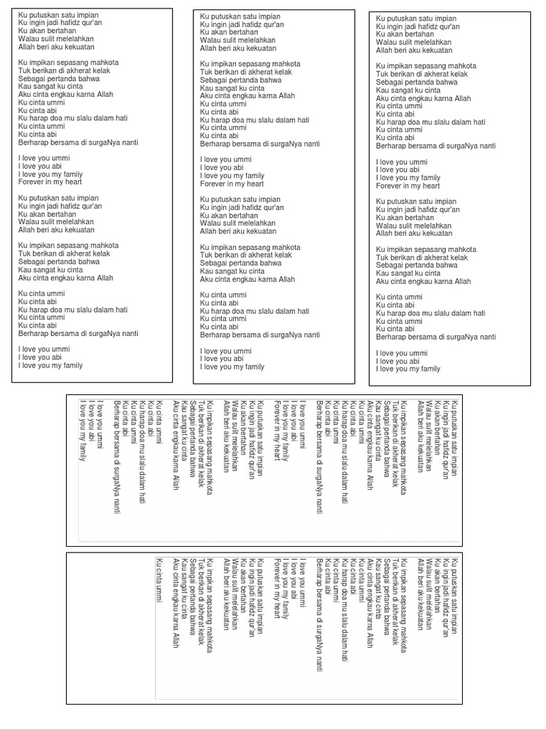 Lagu Hafidz Quran Lirik / Lagi ini dirilis dalam rangka menyambut bulan suci ramadhan. Lagu Hafidz Quran Lirik / Ibu i love you ayahm;, i love my family forever in my heart.
