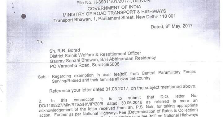 88rmwcou1p6gtm - Toll tax exemption for ex servicemen.